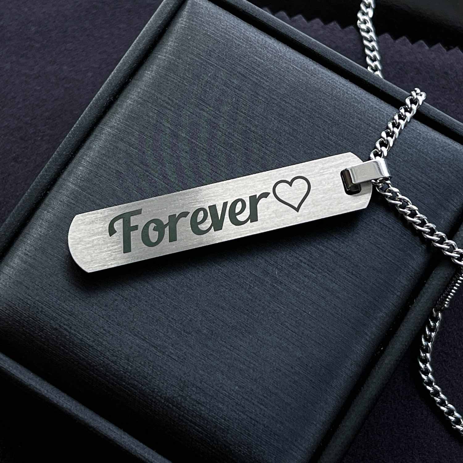 Necklace comes with a Lifetime Guarantee. Custom text engraving will not fade.