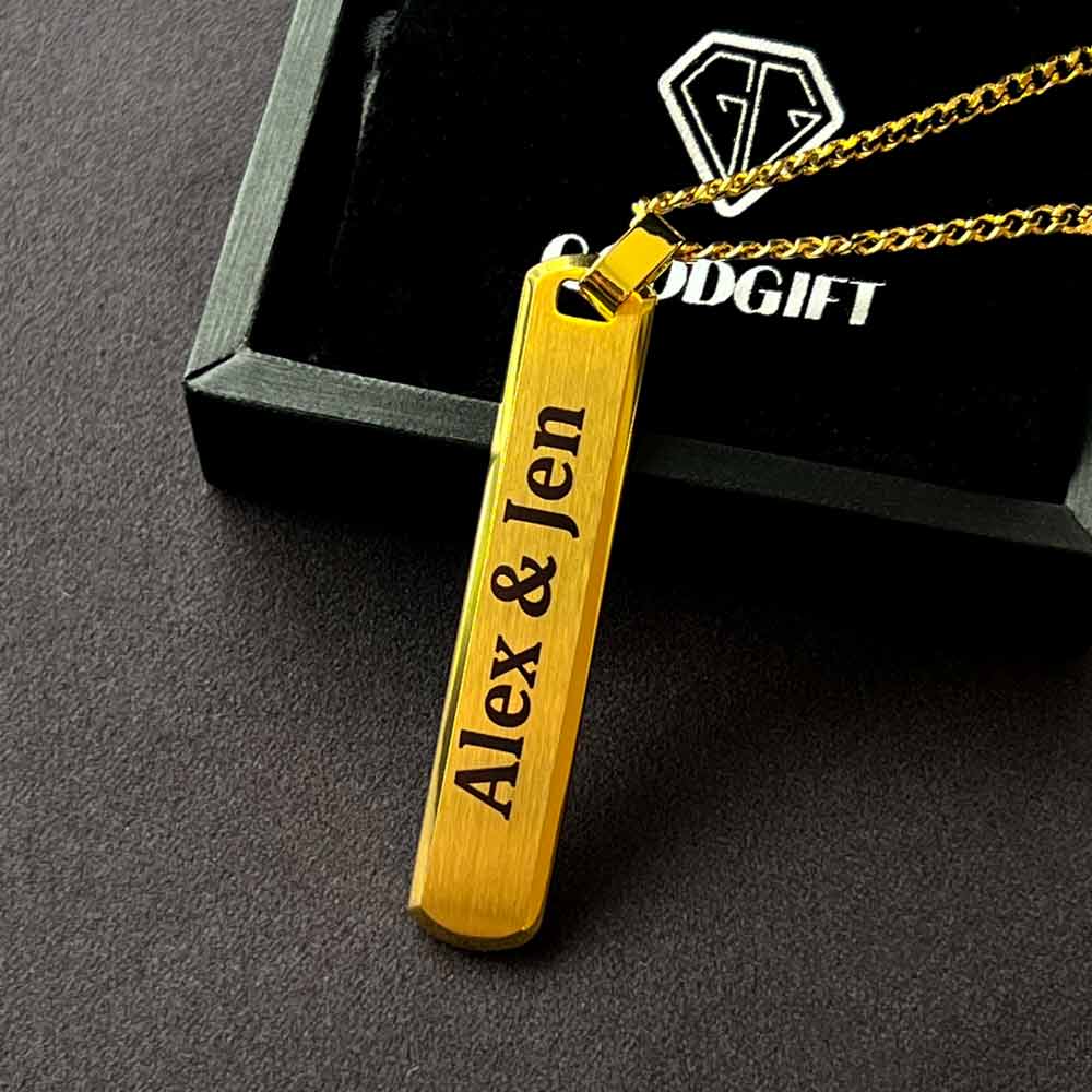 Goodgift Personalised Custom 18K Gold Plated Custom Text Bar Necklace. Engraved in Auckland, New Zealand.