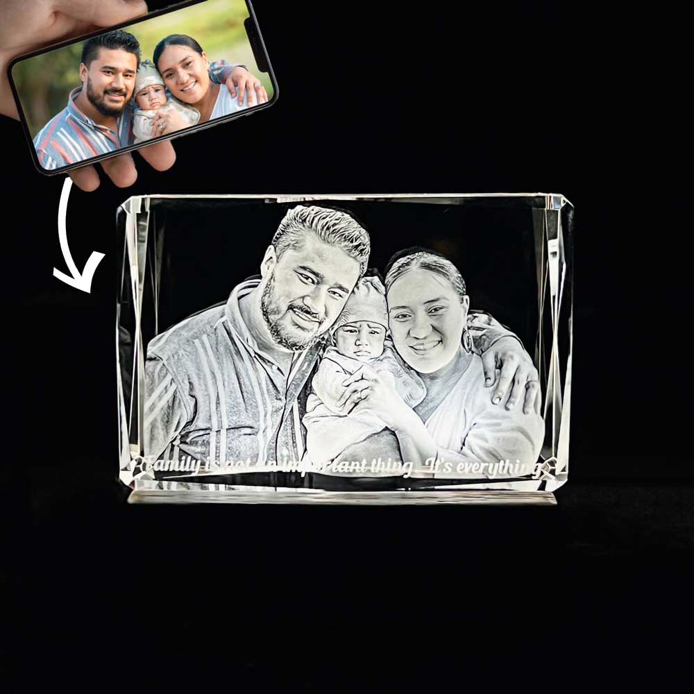 NZ Made Personalised Large 3D Photo Crystal Rectangle - 80mm x 120mm x 60mm
