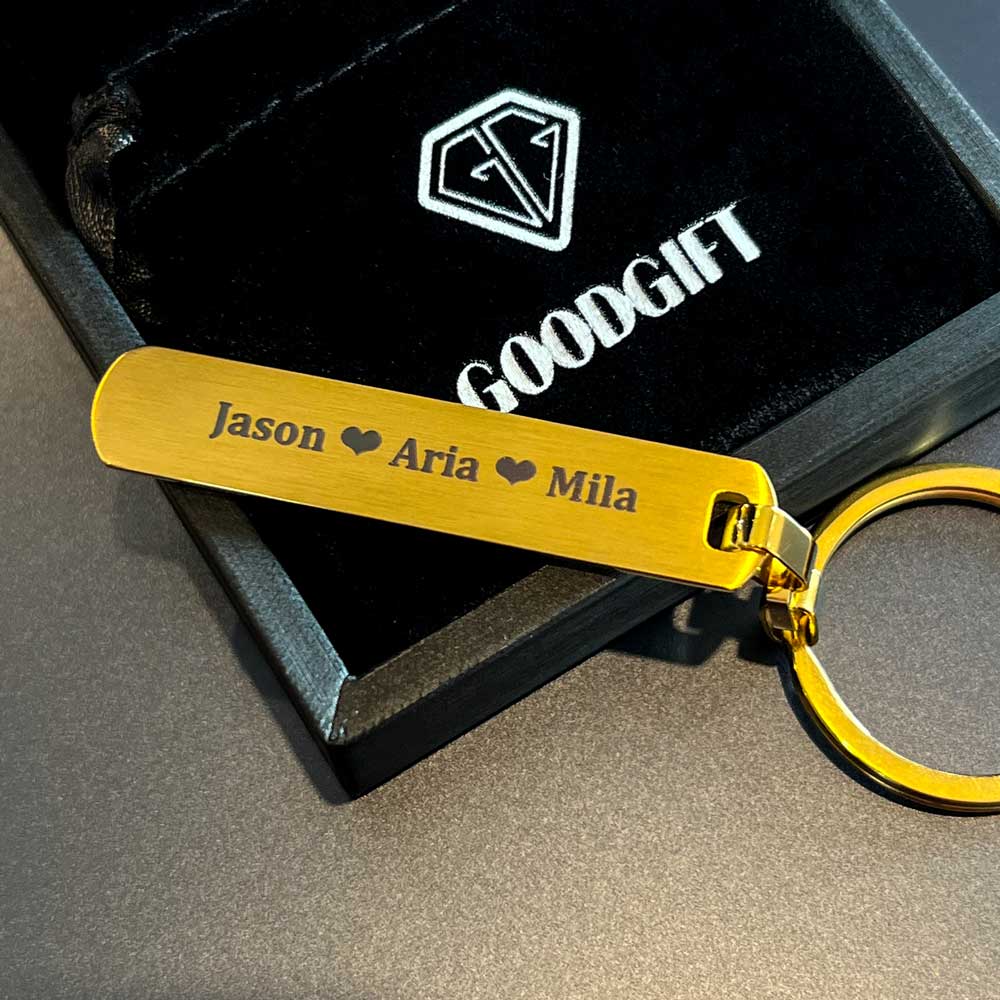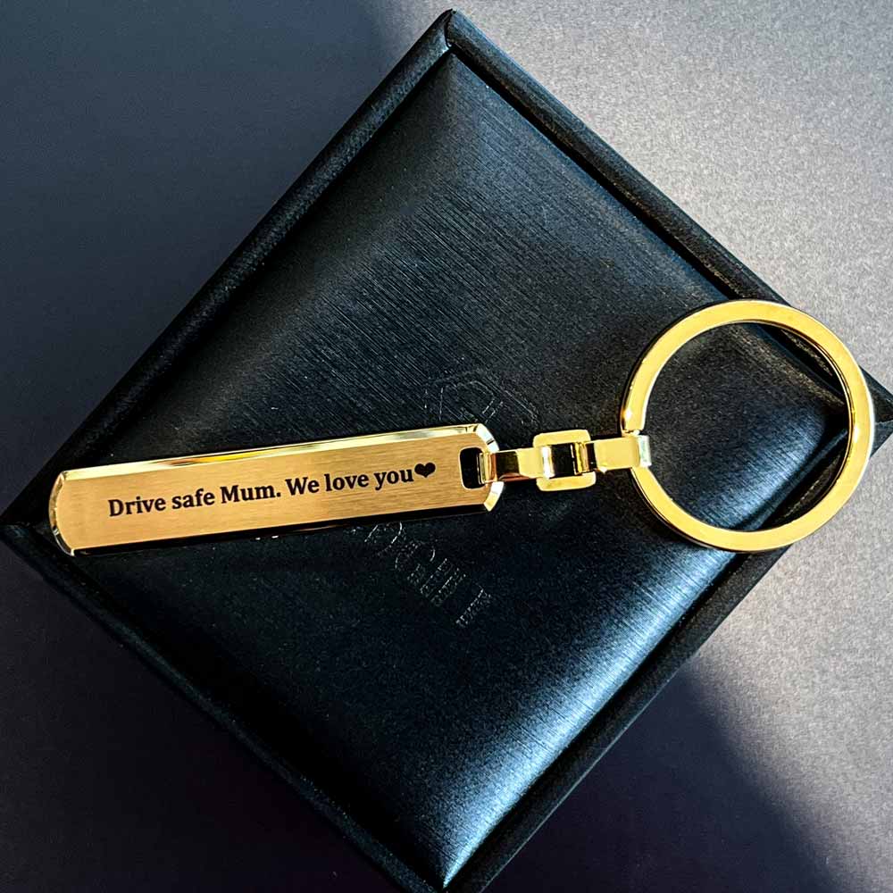 Goodgift 18K Gold Plated Personalised Custom Text Bar Keychain. Engraved in Auckland, New Zealand.