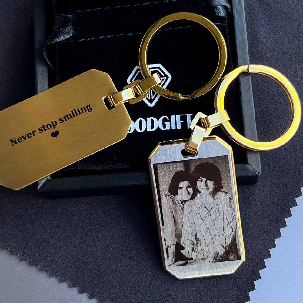 Keychain comes with a Lifetime Guarantee. Custom photo and text engravings will not fade.