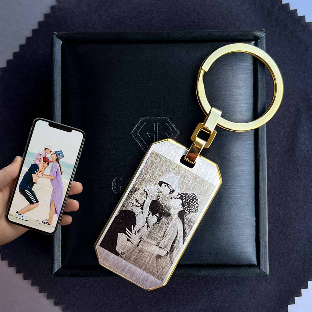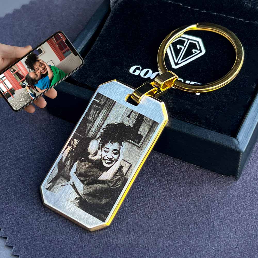 Goodgift Two Tone 18K Gold Plated Personalised Custom Photo & Text Keychain. Engraved in Auckland, New Zealand.