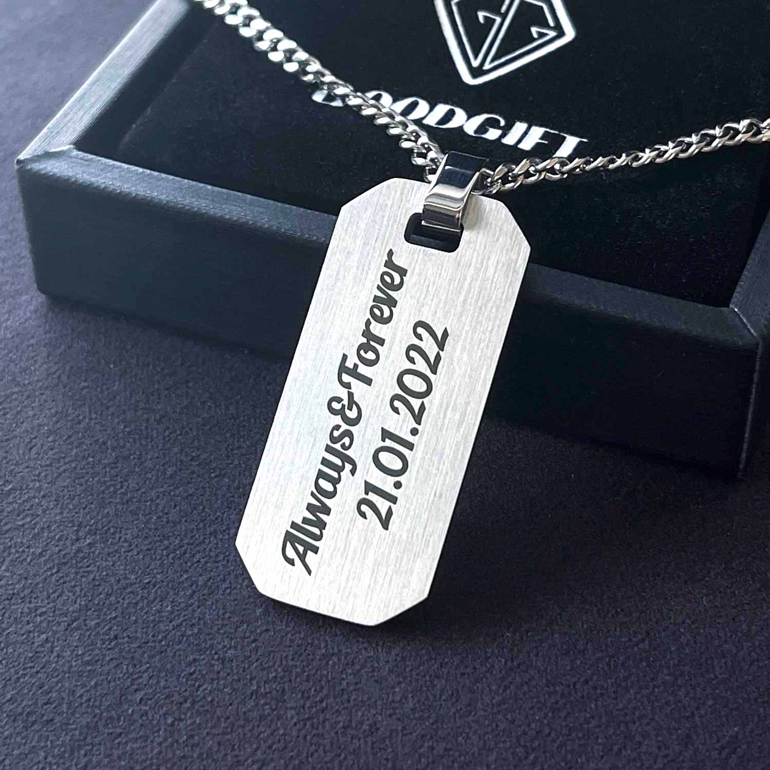 Necklace comes with a Lifetime Guarantee. Custom text engraving will not fade.