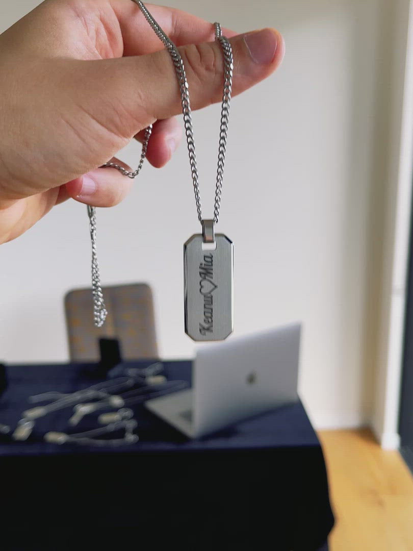 - Pendant with a custom text engraving on both sides (Front and Back)