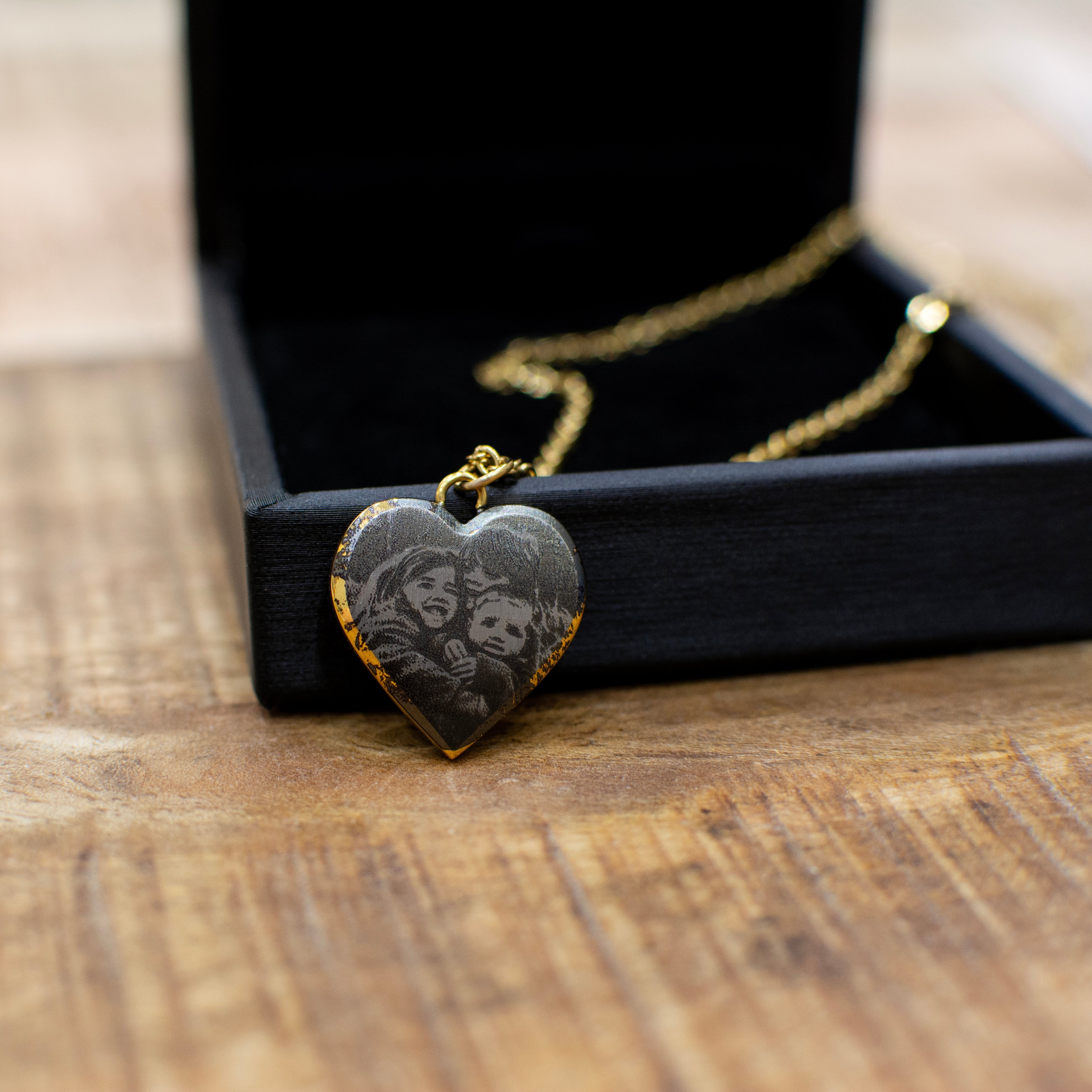 Personalised Custom Photo & Text Heart Shaped Necklace. Engraved in Auckland, New Zealand.